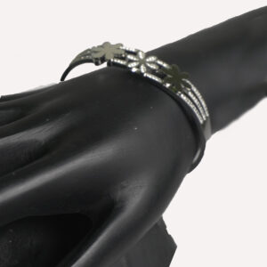 Gardenia Pavé Triple Blossom Bangle – Brushed Silver & Crystal Accent