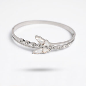 Ethereal Butterfly Silver Bangle with Mother-of-Pearl Inlay & Crystal Accents