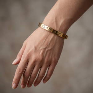 Whimsical "Doodle Art" Gold Bangle with Engraved Hearts, Stars, and Bunnies