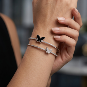 Monochrome Butterfly Double-Layer Silver Cuff with Crystal Pavé Accents