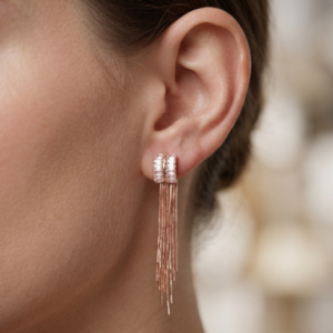 Rose Gold Cascade Tassel Earrings with Baguette Crystal Studs