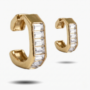 Architectural Baguette-Cut Crystal C-Hoop Ear Cuffs