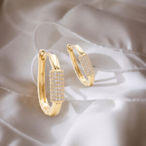 Pavé Carabiner Oval Huggie Hoop Earrings