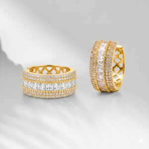 Princess-Cut & Multi-Row Pavé Gold Wide Huggie Hoops