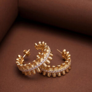 Ribbed Gold Pavé Spine Hoop Earrings