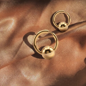 Modern Sphere Captive Hoop Earrings in Gold