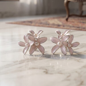 Ethereal Blush Hand-Painted Flower Studs with Pearl Centers