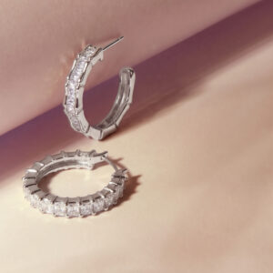 Princess-Cut Channel-Set Hoop Earrings with Scroll Filigree Detail