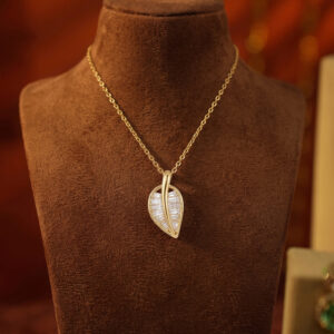 ₹700.00Original price was: ₹700.00.₹500.00Current price is: ₹500.00.Elegant leaf-shaped pendant necklace with sparkling baguette-cut crystals in a premium gold finish—perfect for minimal luxury styling. -