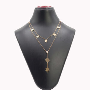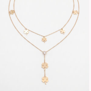 Rose Gold Multi-Clover Layered Y-Necklace with Heart Crystal