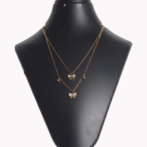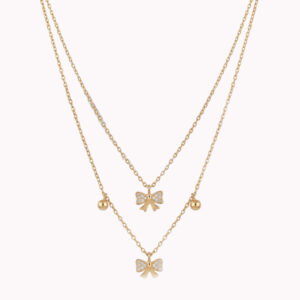 Dainty Double-Layered Bow & Bead Necklace in Gold Finish
