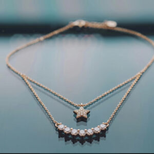 Modern Double Layered Gold Chain & Bar Station Necklace