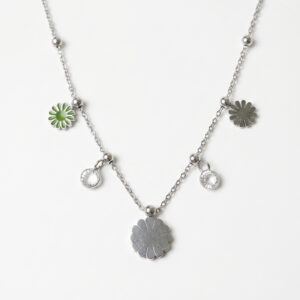 Whimsical Silver Daisy & Crystal Station Charm Necklace
