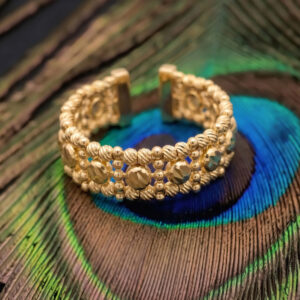 Yellow Gold Beaded Cuff Ring with Faceted Discs