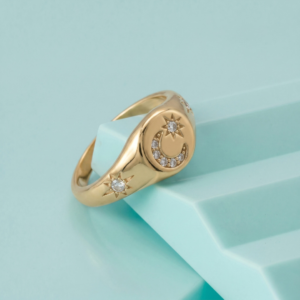 Gold Celestial Moon and Star Signet Ring