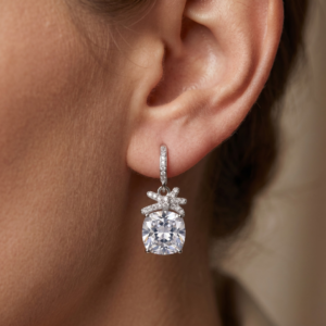 Cushion-Cut Crystal Bow Drop Earrings in Sterling Silver