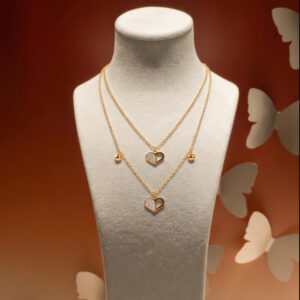 Gold-Plated Double Layered Pave Heart Charm Necklace