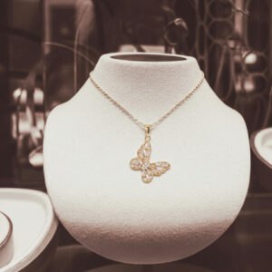 Golden Monarch Crystal Butterfly Pendant Necklace