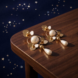 Botanical Pearl Chandelier Earrings – Gold Tone Floral Drop