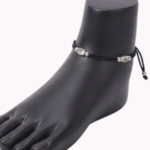 Black Thread Adjustable Anklet (Silver Bead Design)