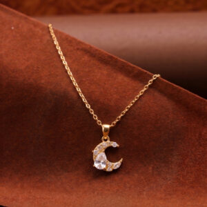 Golden Crescent Moon & Pear-Cut Crystal Pendant Necklace