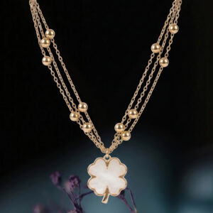 Dainty Gold Bow & Open Clover Pendant Necklace – Sparkling Crystal Accents
