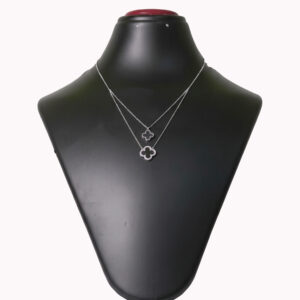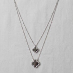 Midnight Alhambra Double-Layer Clover Necklace in Silver