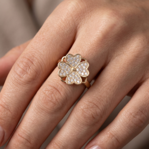 Gold-Tone Pavé Four-Leaf Clover Lucky Charm Ring
