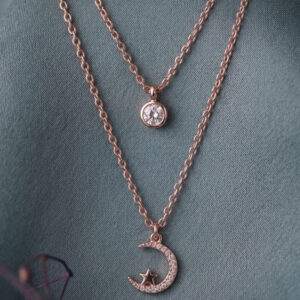 Rose Gold Layered Celestial Necklace with Moon & Star Pendant
