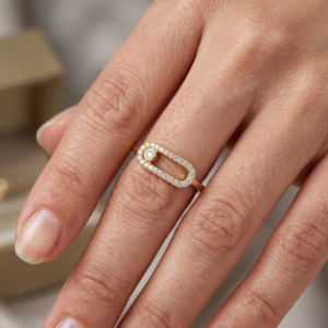 Modern Pavé Safety Pin Motif Adjustable Ring – Gold Finish