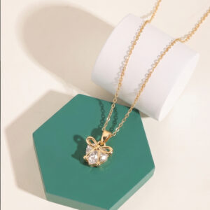 Golden Bow-Wrapped Heart Crystal Pendant Necklace