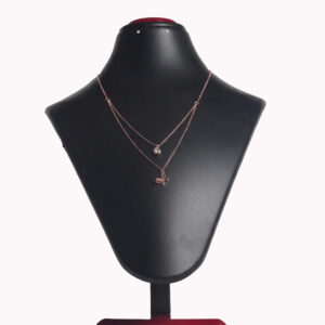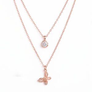 Rose Gold Layered Butterfly & Solitaire Crystal Necklace