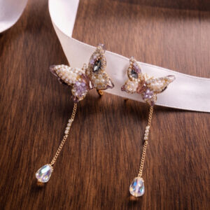 Whimsical Beaded Butterfly Dangle Earrings with Crystal Drops