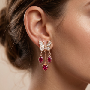 Butterfly Ruby Drop Earrings (Gold Tone)