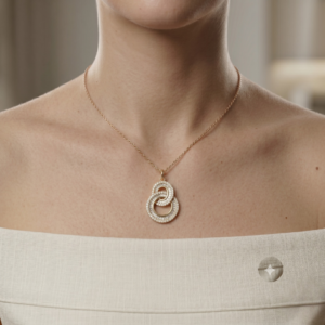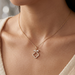 Dainty Gold Bow & Open Clover Pendant Necklace – Sparkling Crystal Accents