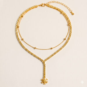 Gold Layered Butterfly Pendant Necklace with Black Bead Drop