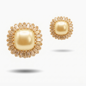 Gold Geometric Drop Earrings with Marquise Crystal & Pearl Accent