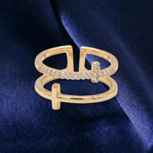 Double Layer Cross Open Ring in Gold – Crystal Pavé Adjustable Band