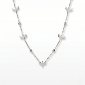 Minimalist Flying Bird Station Necklace in Silver – Dainty Dove Charm Chain