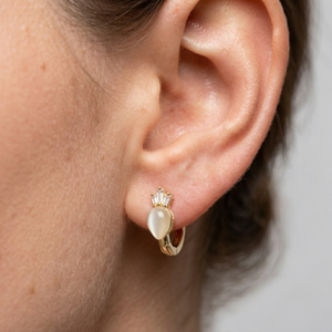 Gold Pearl & Crystal Half Hoop Stud Earrings
