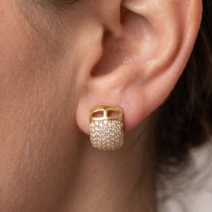 Gold Pearl & Crystal Half Hoop Stud Earrings