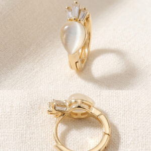 Gold Pearl & Crystal Half Hoop Stud Earrings
