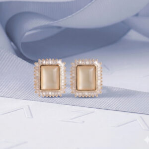 Gold Plated Square Stone Stud Earrings with Crystal Halo