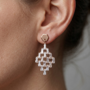Rose Gold Hexagon & Baguette Crystal Rhombus Drop Earrings