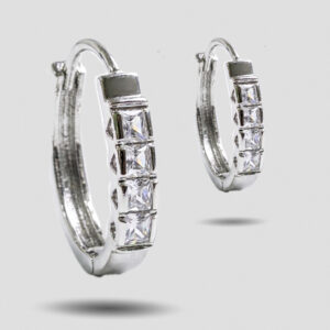 Princess-Cut Channel-Set Hoop Earrings with Scroll Filigree Detail