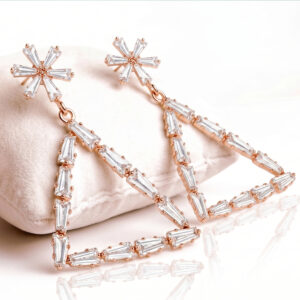 Geometric Crystal & Pearl Square Stud Earrings (Silver Tone)