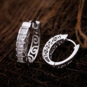 Princess-Cut Channel-Set Hoop Earrings with Scroll Filigree Detail