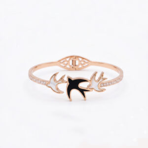 Soaring Trio Swallow Bangle – Rose Gold, Black Onyx Enamel & Mother of Pearl