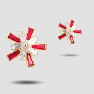 Crimson Starburst Baguette Studs in 14K Gold Finish