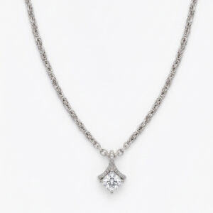 Silver Byzantine Chain Princess-Cut Solitaire Necklace